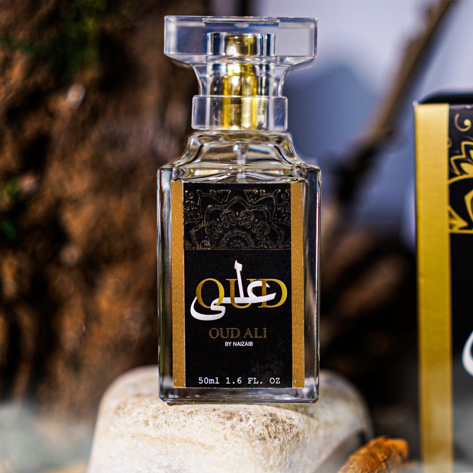 It settles into a luxurious base of sandalwood, herbal accents, and returning oud — creating a deep, enveloping trail that radiates warmth and presence for hours.
